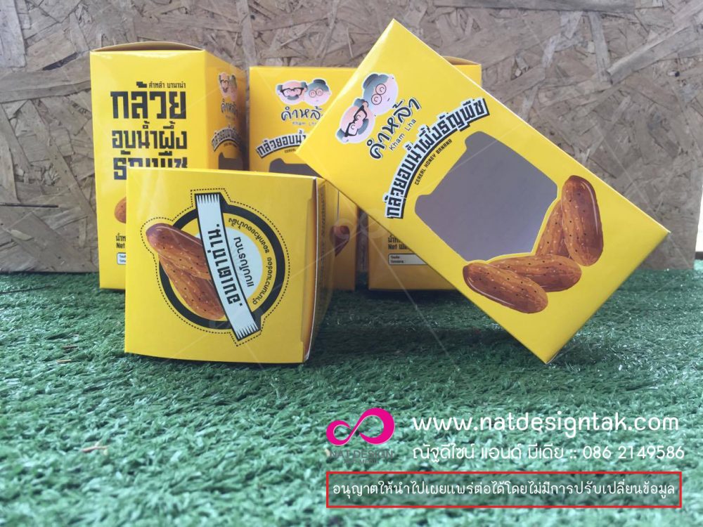 ออกแบบและผลิตกล่องบรรจุภัณฑ์ กล้วยอบน้ำผึ้งธัญพืช งานพัฒนาสินค้า Otop จังหวัดตาก