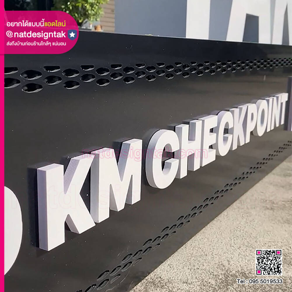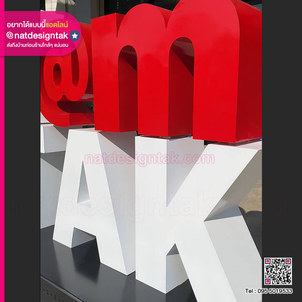 จุดเด่นที่ทำให้ ป้ายแลนด์มาร์ค 1 Route I @m Tak ดูมีมิติและน่าสนใจคือการเลือกใช้ “งานติดตัวอักษรนูน”: