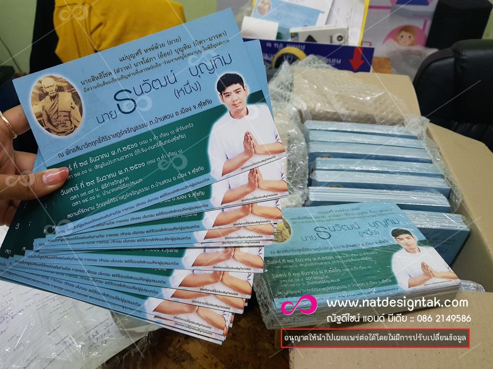 Homeตัวอย่างงานรวมแบบการ์ดงานบวช บริการงานออกแบบการ์ดงานบวช รวมแบบการ์ดงานบวช บริการงานออกแบบการ์ดงานบวชBy nattapon / 16 ตุลาคม 2018 การ์ดงานบวช การ์ดบวช ราคาส่งเหมาะหรับรัานขายการ์ดเชิญ เรายังมีการ์ดอื่นๆให้ท่านซื้อไปขายต่อ เช่น การ์ดแต่งงาน การ์ดงานศพ มีหลายแบบ หลายลาย พิมพ์ การ์ดงานบวช ออนไลน์ | การจัดส่งฟรีและรวดเร็ว การ์ดงานบวช แบบหน้าเดียว 5×7 นิ้ว สั่งออนไลน์ ราคาถูก ส่งงานไว ไม่มีค่าบล็อก
