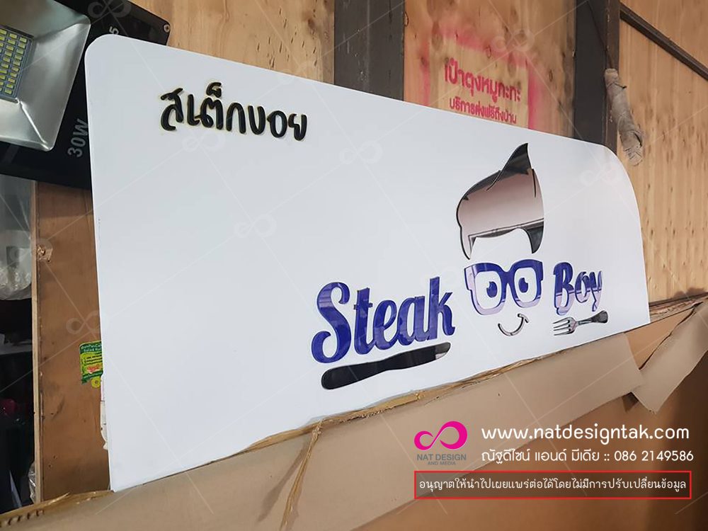 ป้ายร้านสวยๆ ผลิตด้วยอะคิลิคติดพลาสวูด สวย สด ทนนาน เงาแวปวาป สร้างมิติให้แก่ป้ายร้านค้าของคุณ