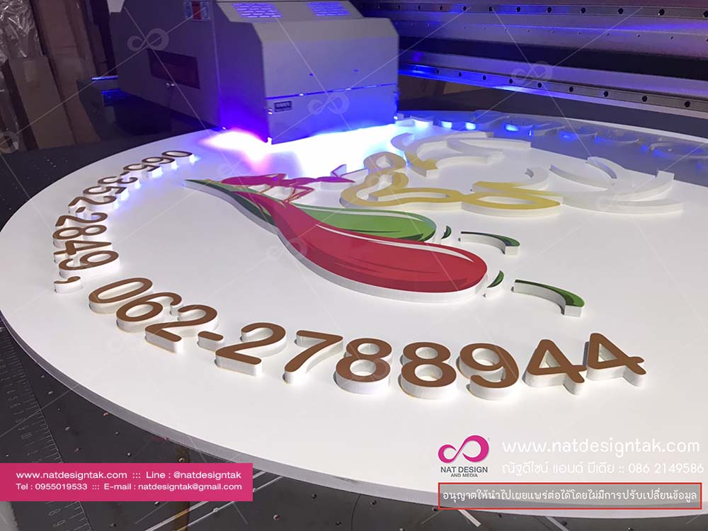 - ระบบงานพิมพ์อิงค์เจ็ทสำหรับงานภายนอกที่มีความละเอียด (Inkjet Solvent Konica 512i) มีสี CMYK ตัวอย่างงานป้าย