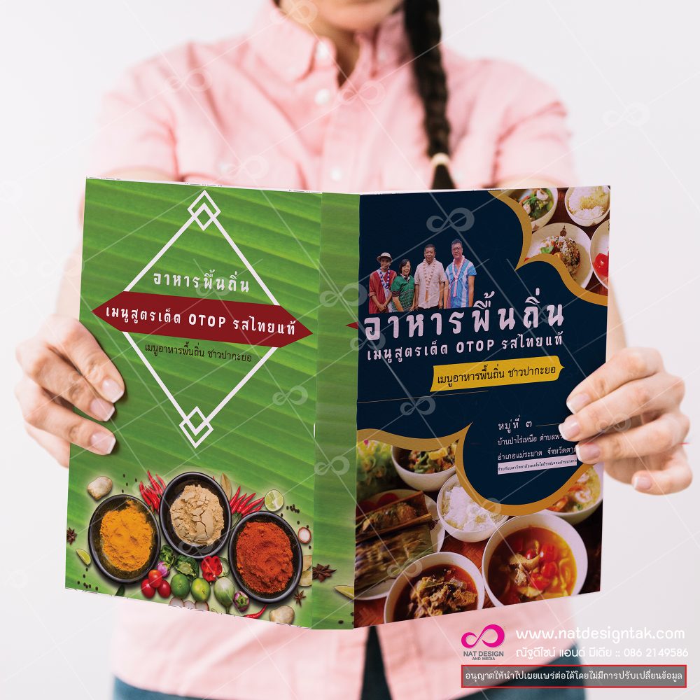 งานออกแบบพร้อมพิมพ์คู่มือแนะนำรายการอาหาร สูตรเด็ดอาหารพื้นถิ่น เมนูอาหารทุกประเภท