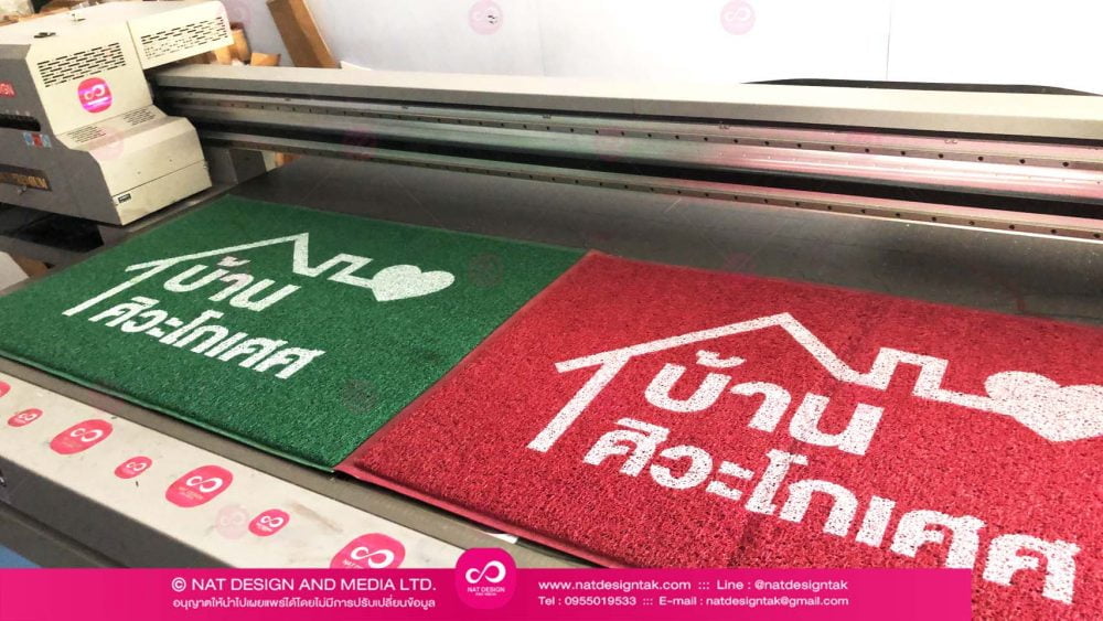 ร้านทำป้าย รับออกแบบพร้อมผลิต พรมดักฝุ่น หรือพรมเช็ดเท้าพิมพ์ลวดลายตามแบบ หรือตามความต้องการของลูกค้า พิมพ์ชื่อร้าน ยินดีต้อนรับ ขอบคุณที่ใช้บริการ เป็นต้น พรมเช็ดเท้าคุณภาพดี มีสีให้เลือกหลากหลายสี พร้อมกับขนาดที่มีให้เลือกได้อีกเช่นกัน เช่น สีแดง สีเขียว สีน้ำเงิน สีดำฯ และขนาดที่มีให้เลือก ถึงสองแบบ ราคาถูก มีบริการจัดส่งชิ้นงานทั่วไทย